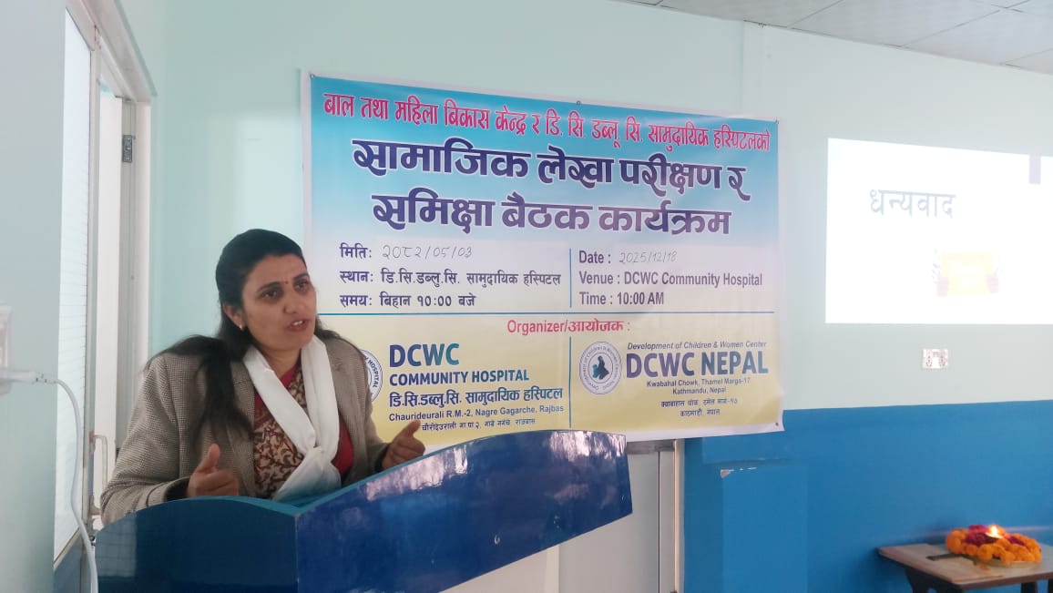 On Push 03, 2082 (December 18, 2025), DCWC Nepal successfully organized a Social Audit and Review Meeting for the Fiscal Year 2081/2082 at the premises of DCWC Community Hospital,. Its main purpose is to review institutional performance, ensure transparency, and strengthen collaboration with community stakeholders.