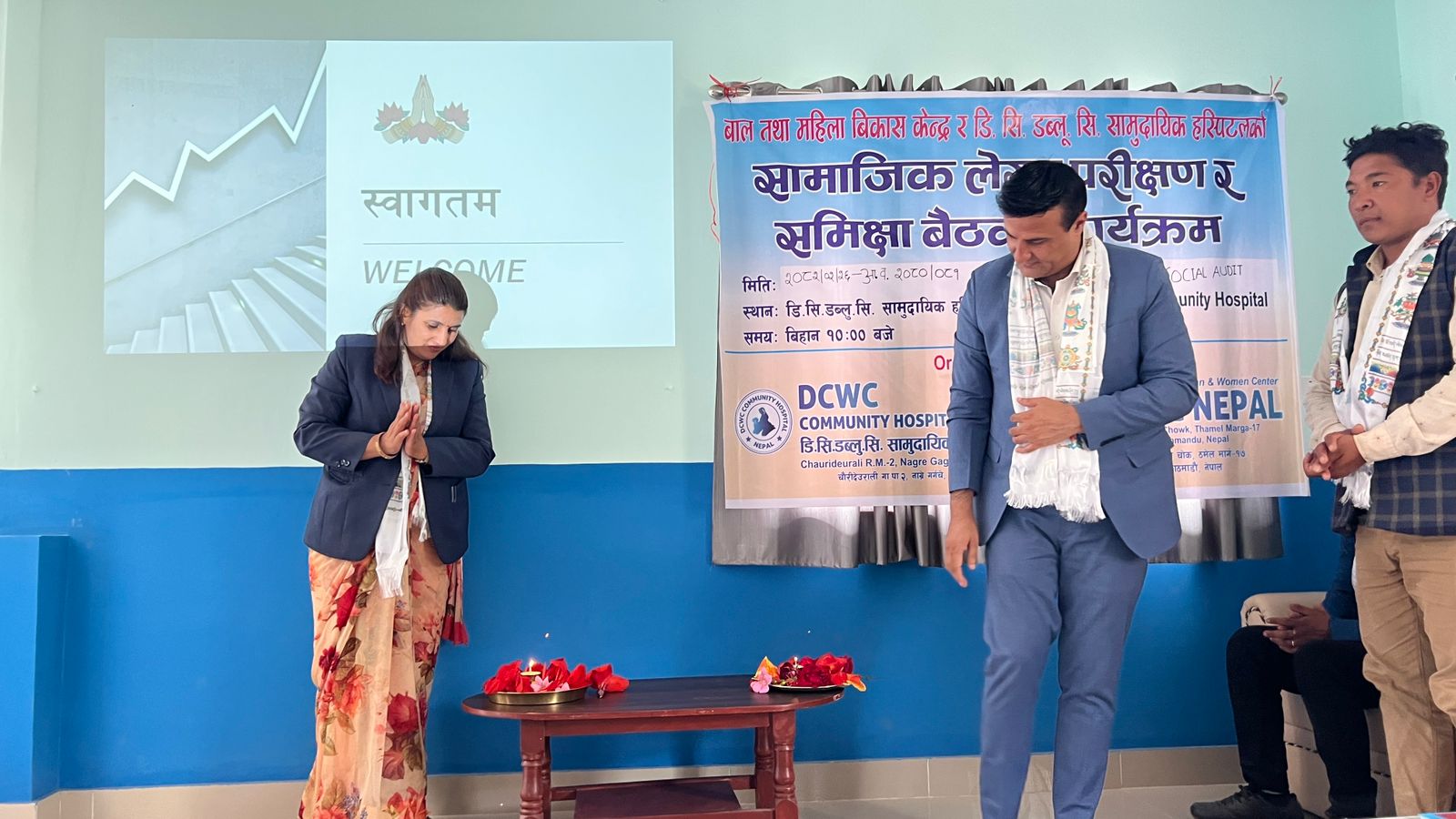 On Jestha 26, 2082 (which falls on June 9, 2025), the DCWC Nepal and DCWC Community Hospital organized the social audit for the fiscal year 2080/81. The program was held and conducted at DCWC Community Hospital Rajbash, Kavre premises. The event welcomed Mr. Deepak Gautam, the Chief of the District Coordinator Committee, and Ms. Renuka Chaulagain, the Chief Administrative Officer of Chaurideurali Rural Municipality, as esteemed guests of honor.