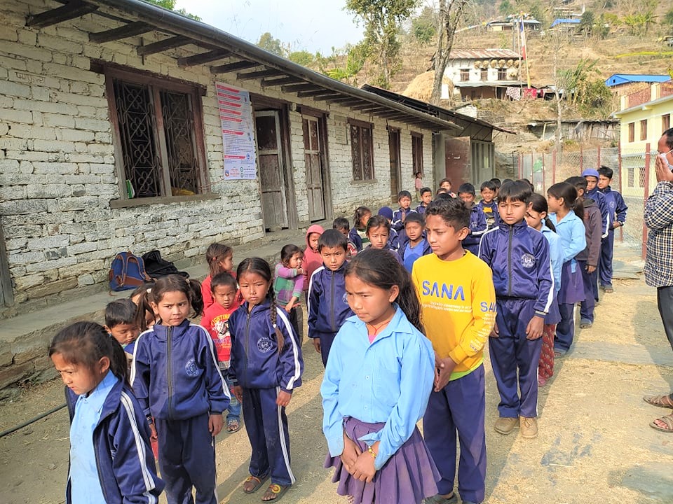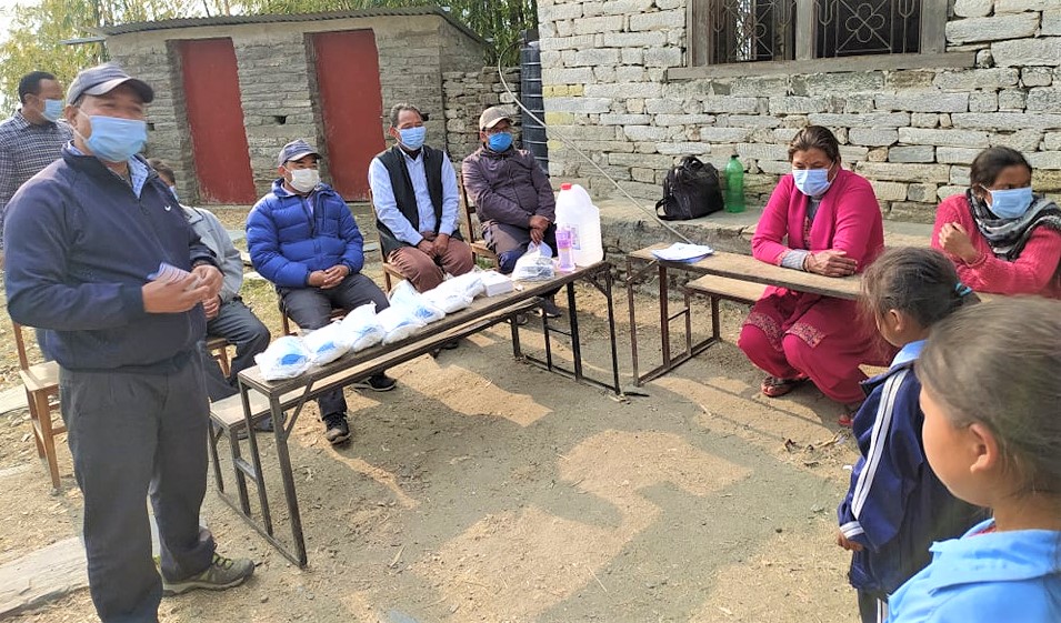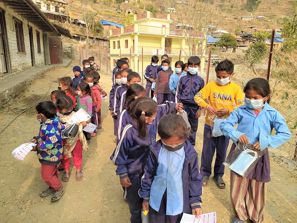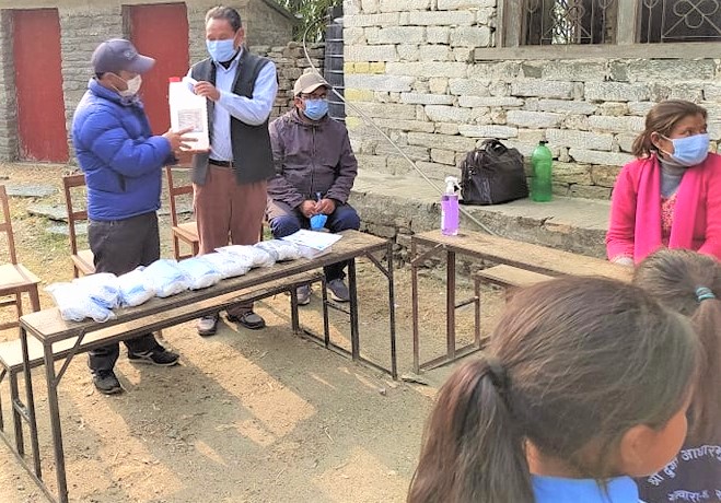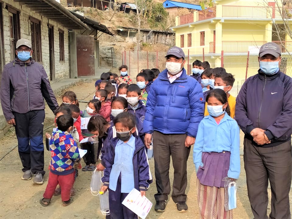 Covid-19 Awareness Plus Covid-19 Preventive Materials distribution Program at Shree Darga Basic School, Doramba-4, Ramechhap. A Thermal Gun and a Sanitizer were provided to the school and total 52 students and teachers were given Masks.