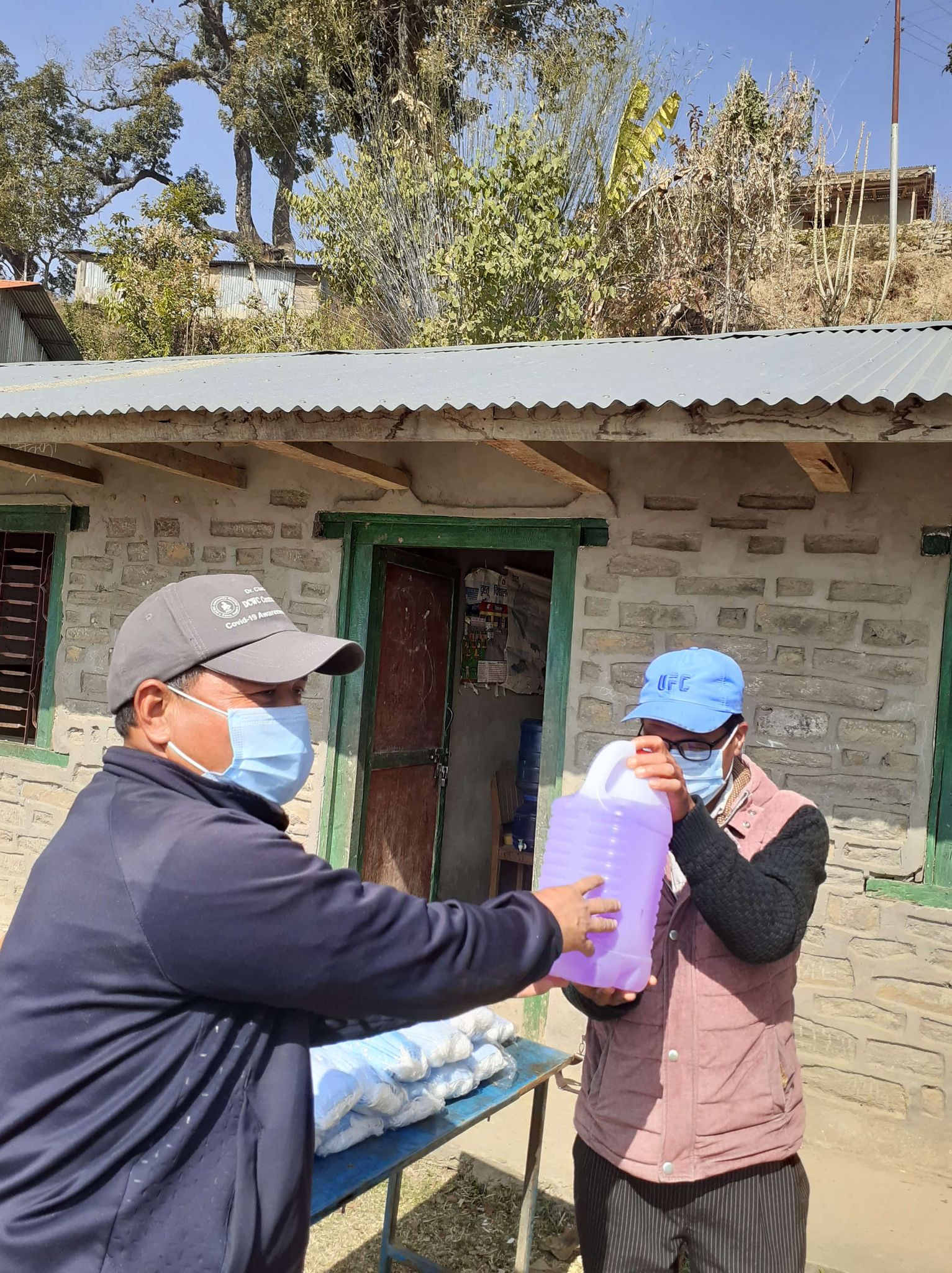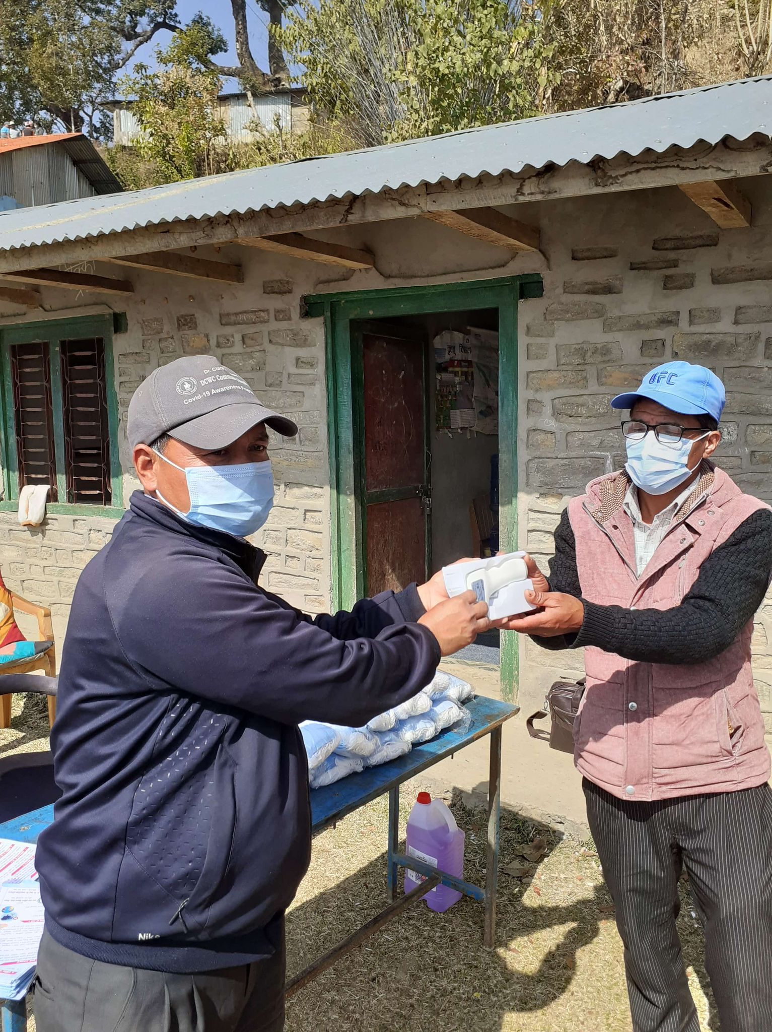 Covid-19 Awareness Plus Covid-19 Preventive Materials distribution Program at Shree Ganesh Basic School, Chaurideurali-2. A Thermal Gun and a Sanitizer were provided to the school and total 65 students and teachers were given Masks.