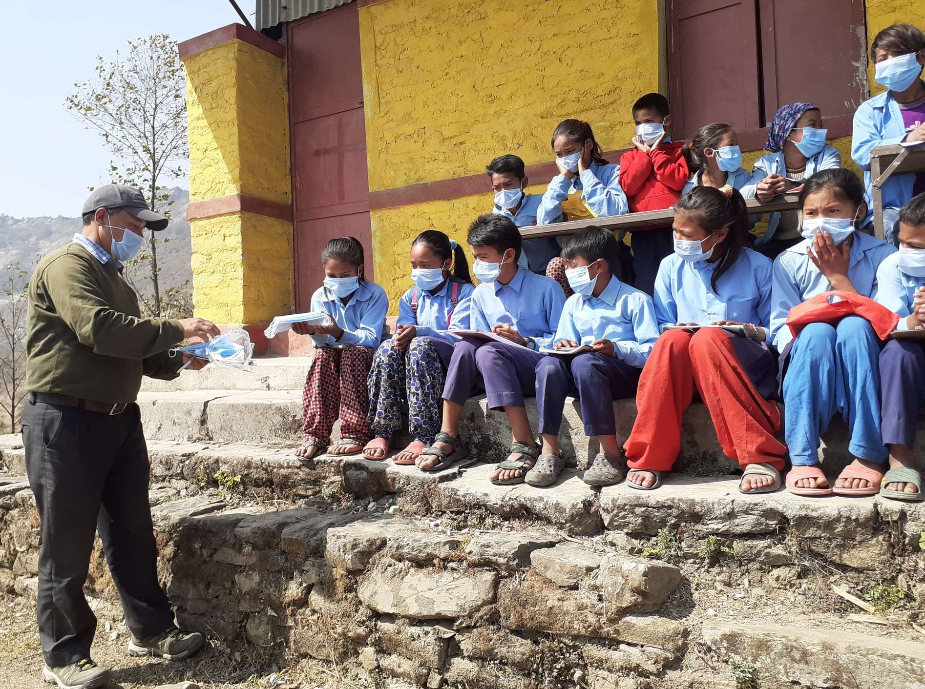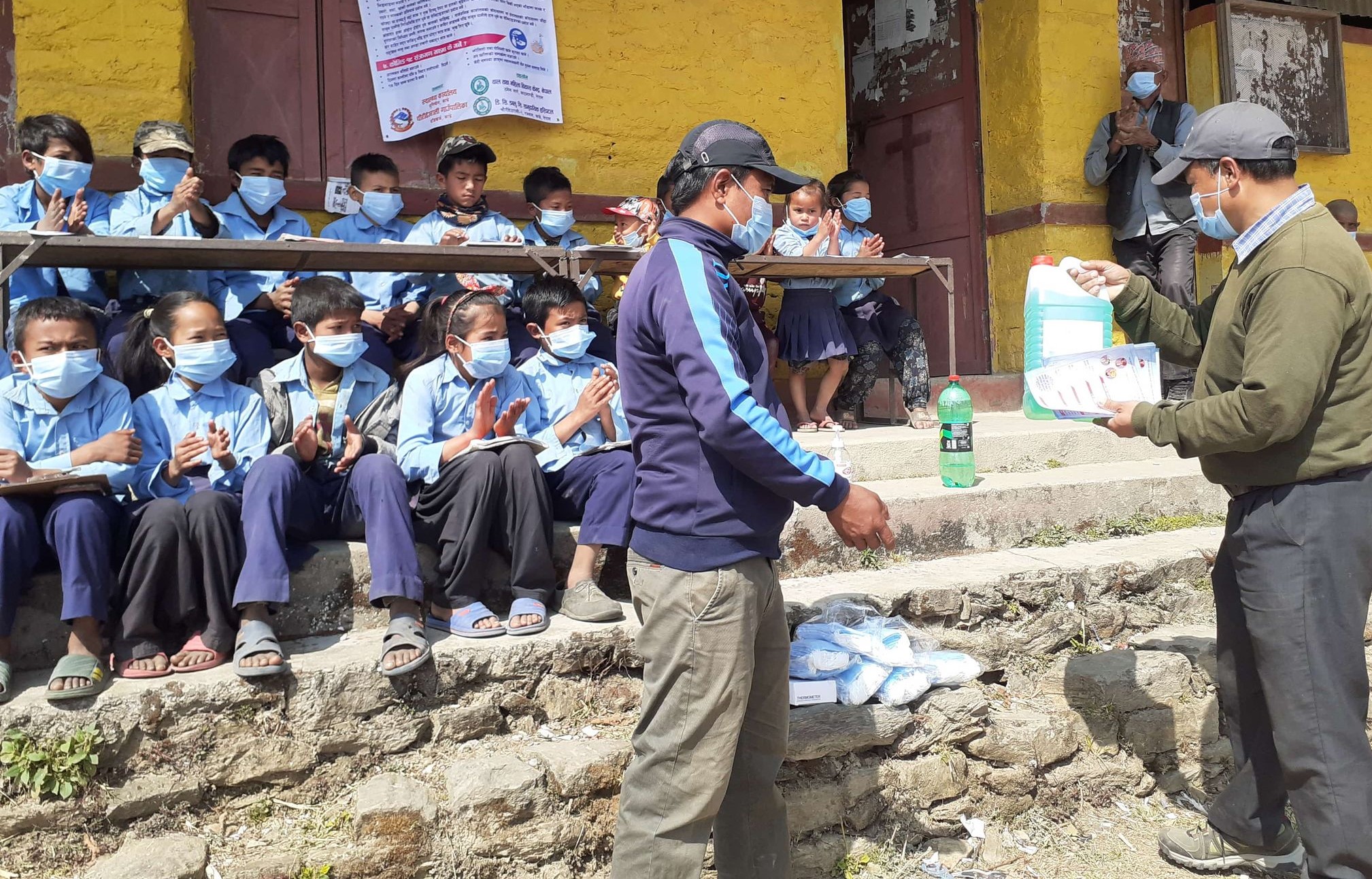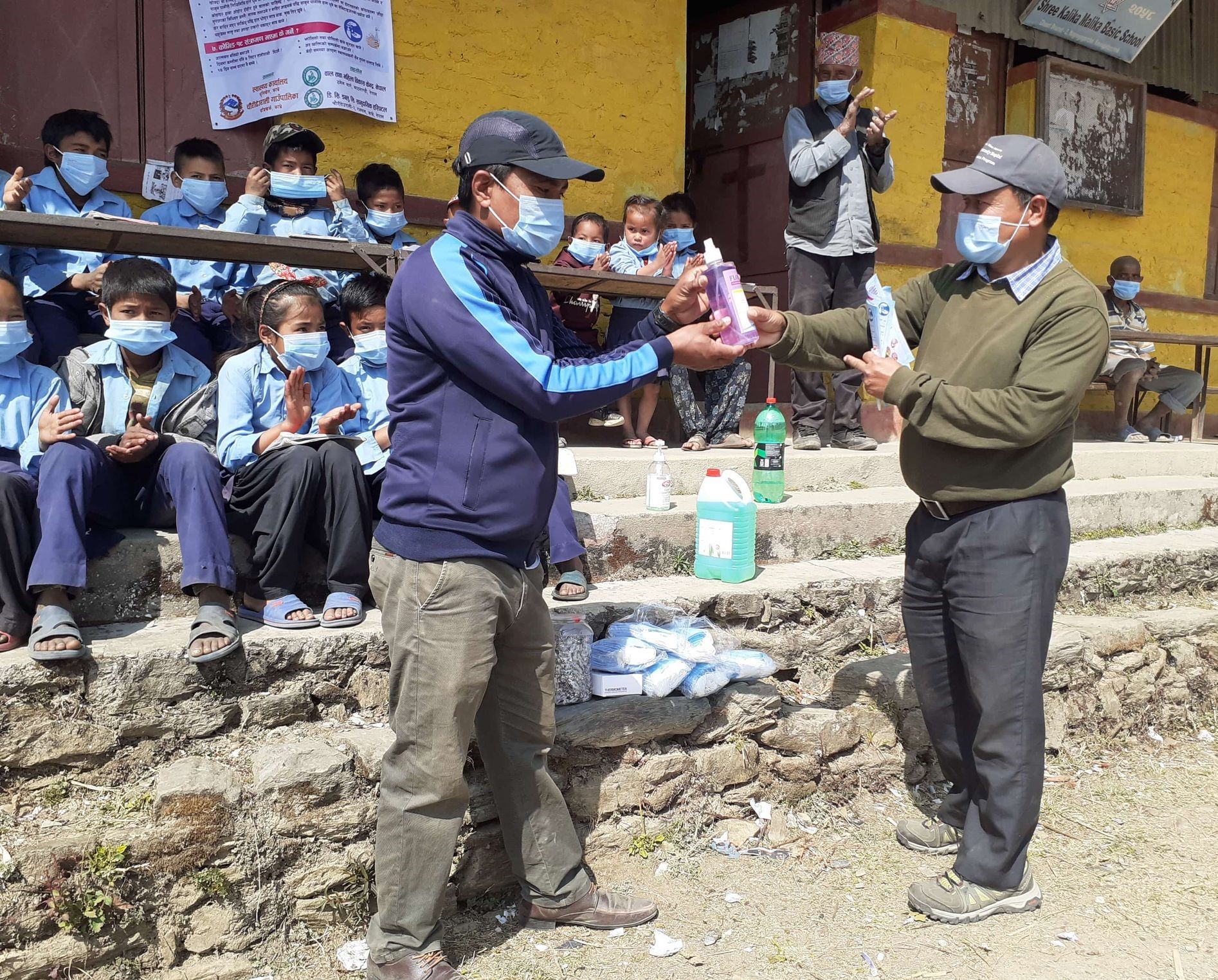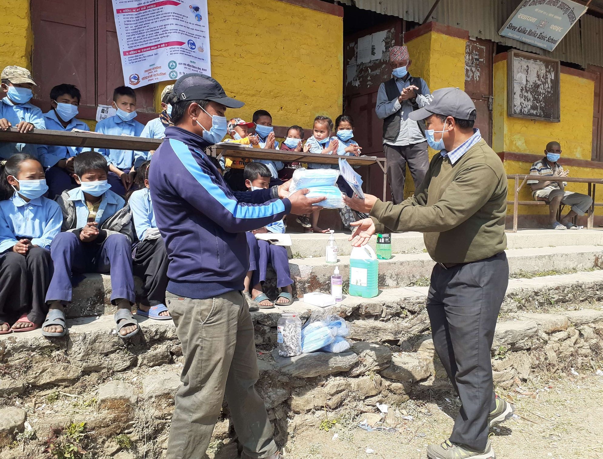 Covid-19 Awareness Plus Covid-19 Preventive Materials distribution Program at Shree Kalika Malika Basic School, Chaurideurali-2. A Thermal Gun and a Sanitizer were provided to the school and total 48 students and teachers were given Masks.
