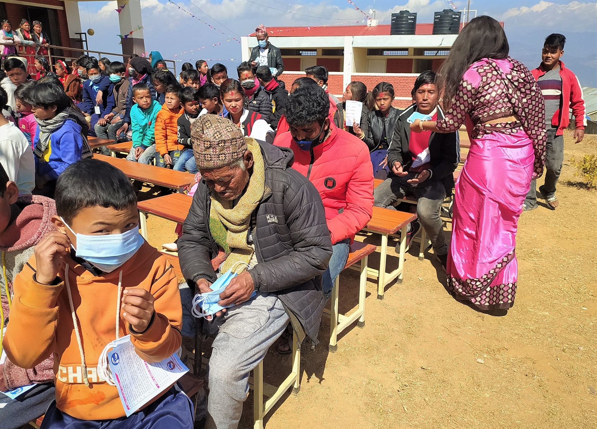 Covid-19 Awareness Plus Covid-19 Preventive Materials distribution Program at Shree Kharpani Secondary School, Kharpani, Doramba-4, Ramechhap.  A Thermal Gun and a Sanitizer were provided to the school and total 142 students and teachers were given Masks.