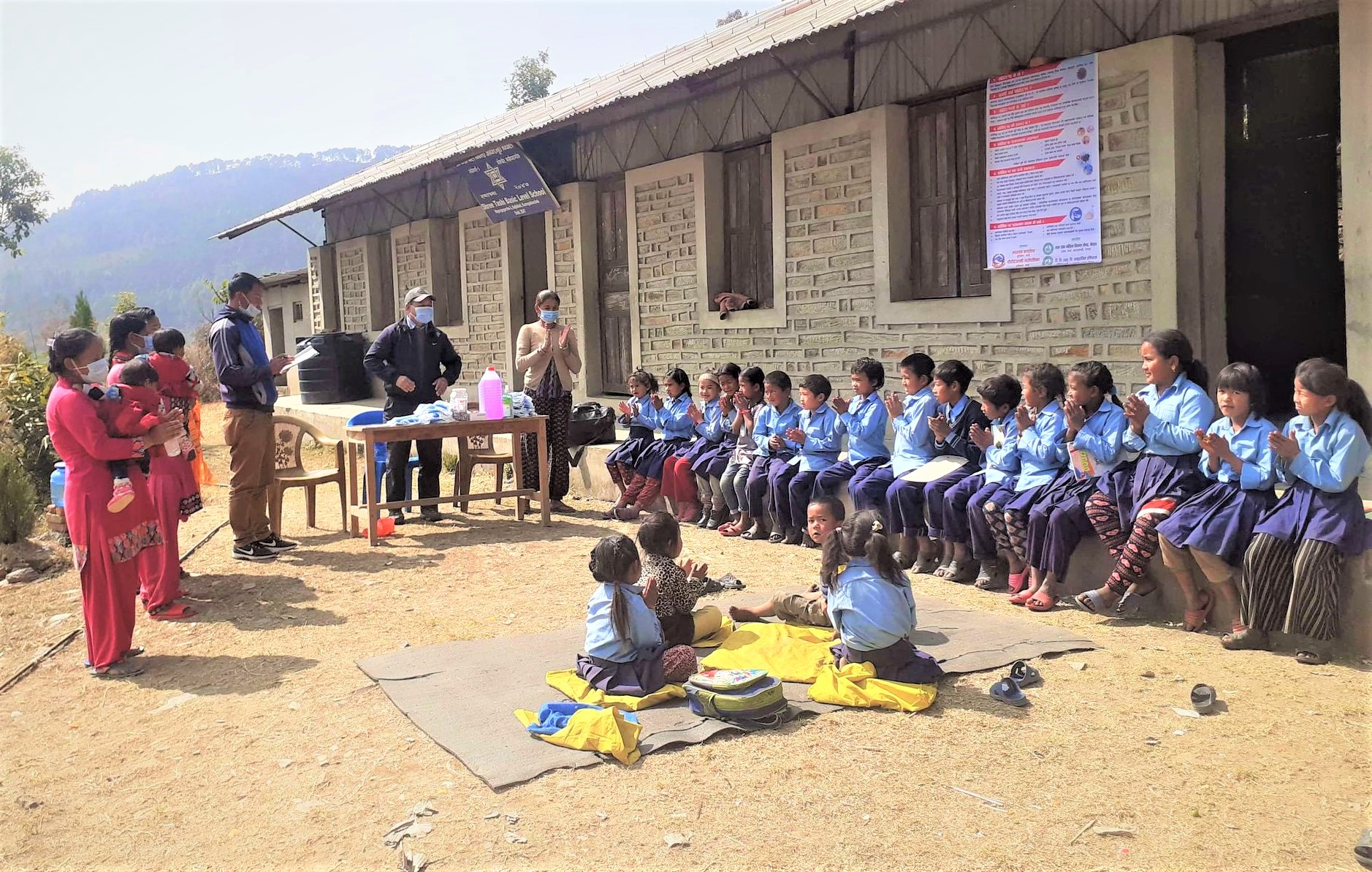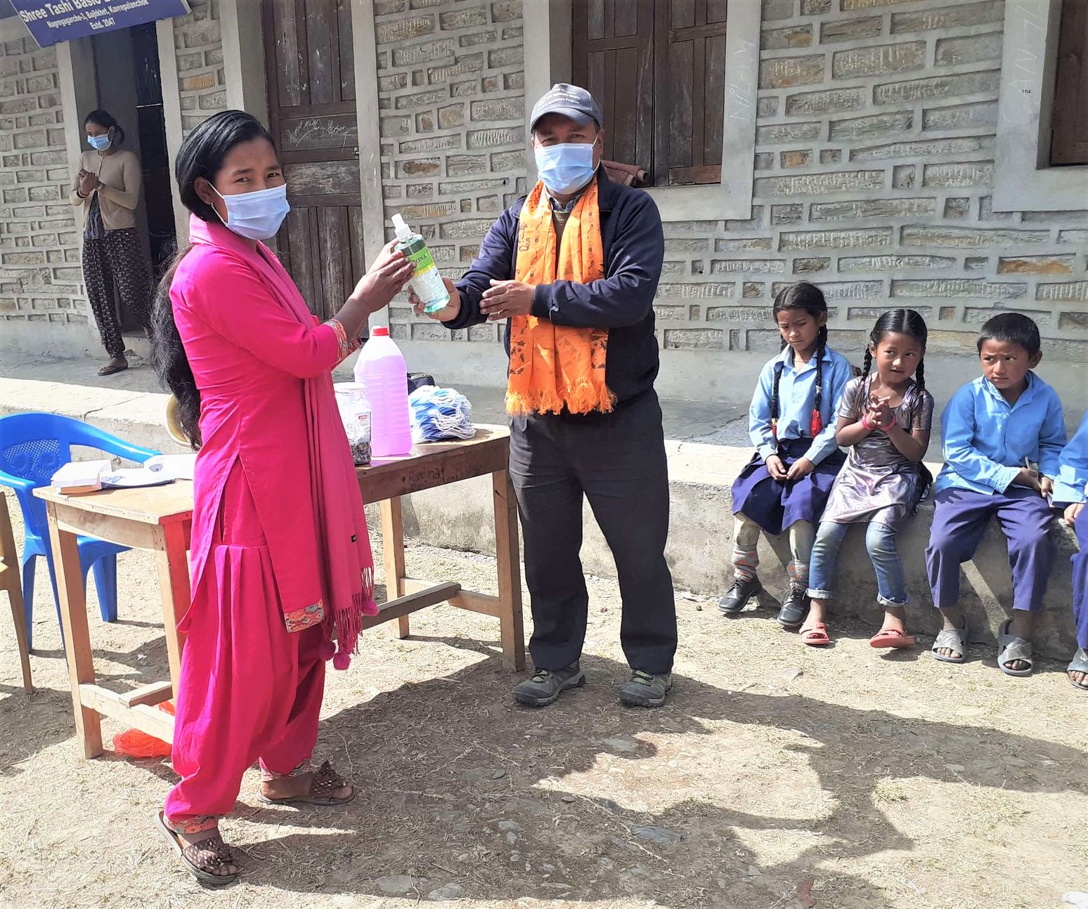 Covid-19 Awareness Plus Covid-19 Preventive Materials distribution Program at Shree Tashi Bal Bikash Basic School, Chaurideurali -2. A Thermal Gun and a Sanitizer were provided to the school and total 45 students and teachers were given Masks.