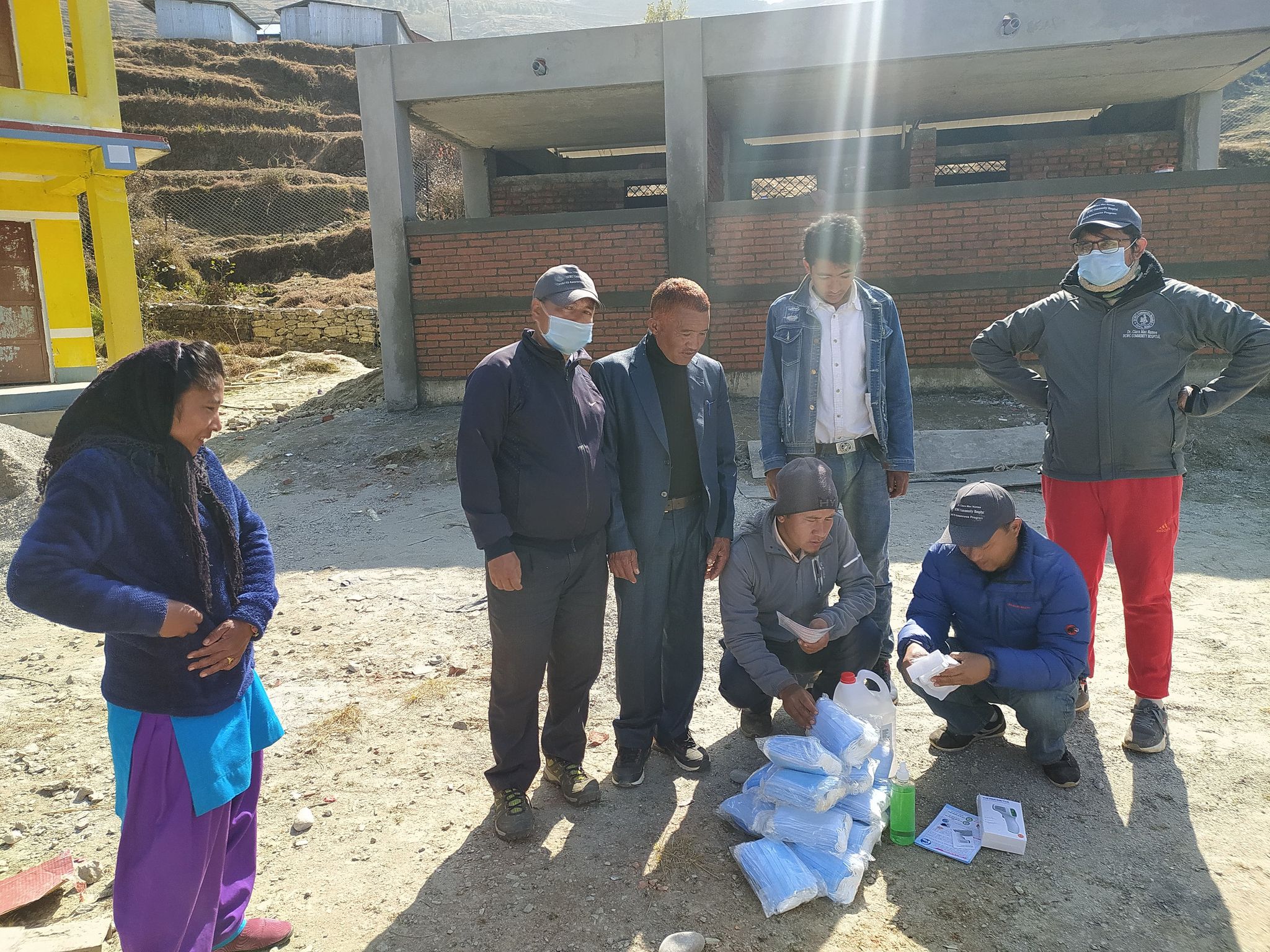A Covid-19 preventive Materials such as a thermal gun, a sanitizer and masks enough for 104 students were handover to principal since the school was closed at Shree Setidevi Basic School, Pasewan, Doramba -4, Ramechhap.