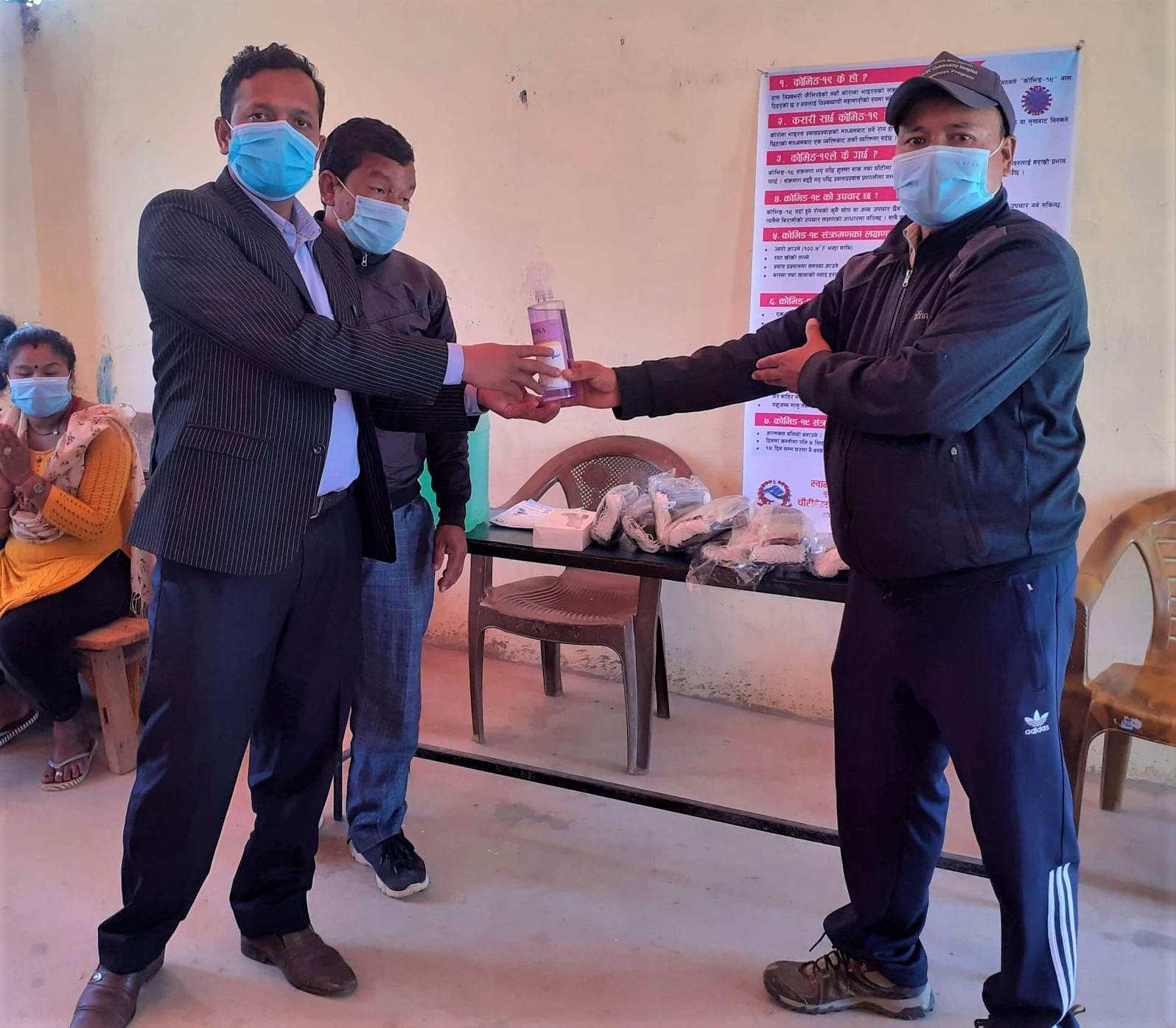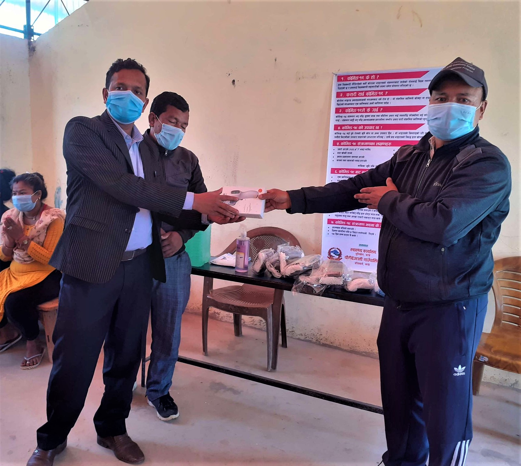 A Covid-19 Awareness Plus Covid-19 Preventive Materials distribution Program at Shree Bachheshwor Basic School Chaurideurali:8, Pachuwarghat. A thermal gun  and a sanitizer were provided to the school. Total 113 students of both schools and teachers were given Masks.