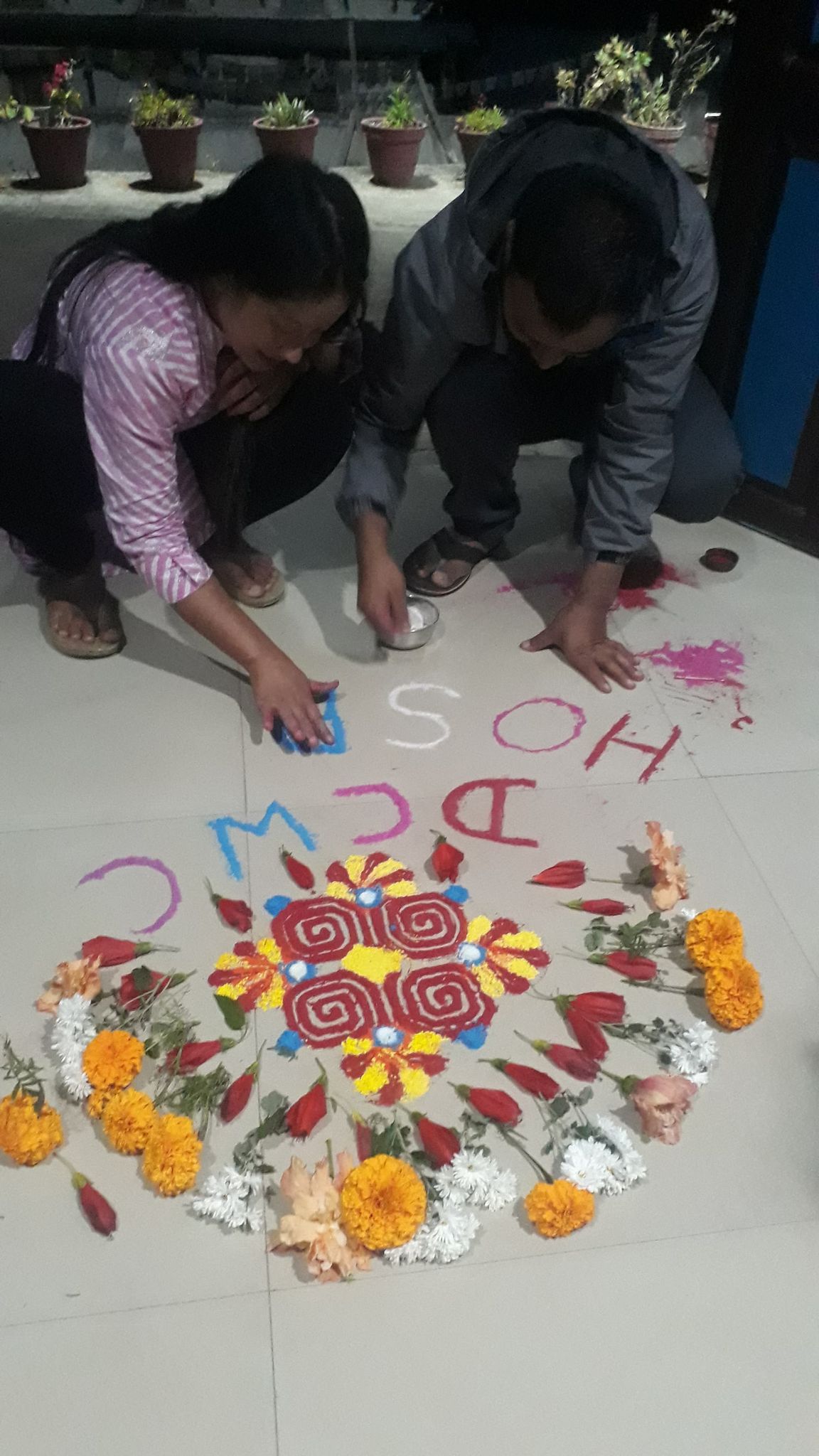 DCWC Community Hospital Celebrated Tihar Festival 2077, Floor well decorated by our Medical Team to welcome the Goddess of Wealth, Laxmi on Novermenr 14th.